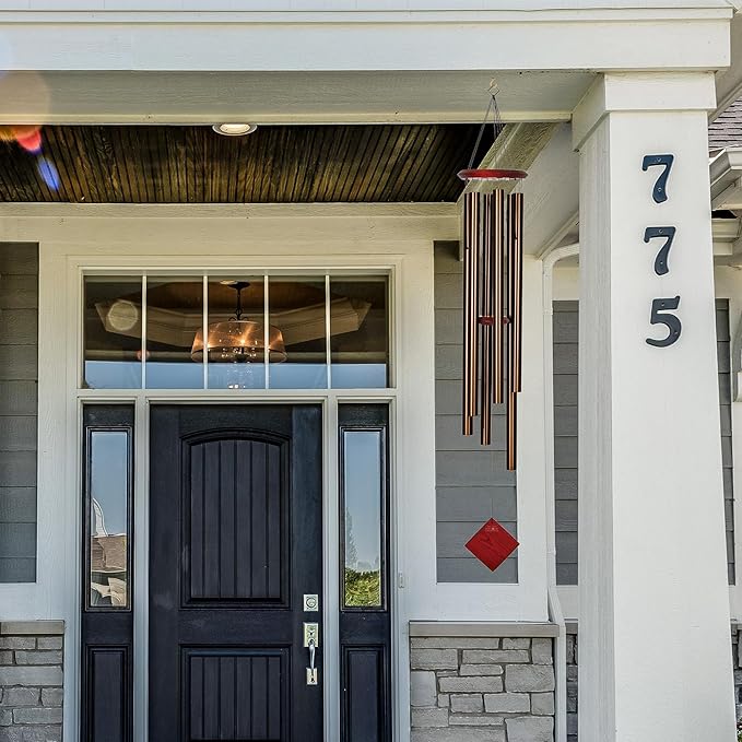 - Wind Chimes for Outside - These wind chimes for outside make great garden decor for outside, outdoor decorations for patio decor and front porch decor. Measures 54'' long from the top of the o-ring to the end of the wind catcher