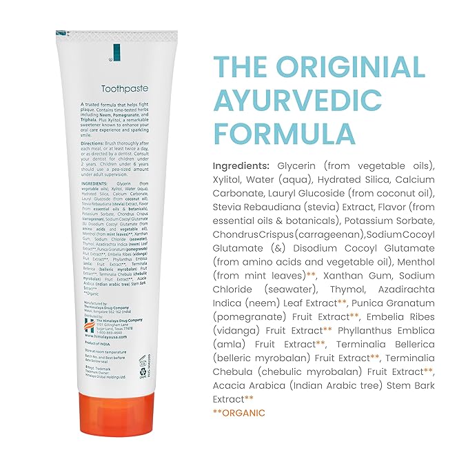 - Botanical Ingredients: Toothpaste is formulated with Neem, a tropical plant whose twigs have been used as toothbrushes for thousands of years, and Pomegranate to fight plaque.