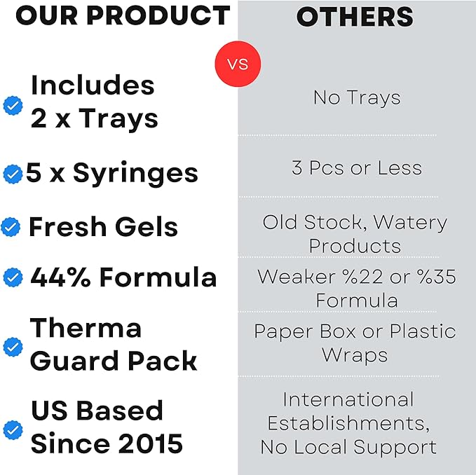 - Custom Fit for Better Whitening – Includes 2 moldable teeth whitening trays that ensure full coverage, plus 5x5ml syringes for precise application.
