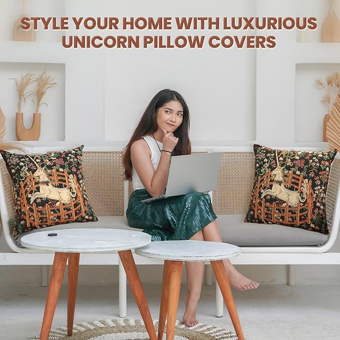 - Delicate Craftsmanship: Are you searching for captivating tapestry art pieces by famous artists? Let us help you create an appealing home ambiance with our stylish decorative pillows for couch, carefully hand-finished by skilled artisans in Belgium on a jacquard loom with 100% cotton thread. Update the look of your living space with our exquisite unicorn throw pillow covers, reflecting your unique style