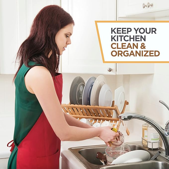 - FOLDABLE & SPACE-SAVING DESIGN – This collapsible bamboo dish drying rack makes dish drying efficient and clutter-free. When not in use, fold it flat for compact storage, making it ideal for small kitchens or limited counter space.