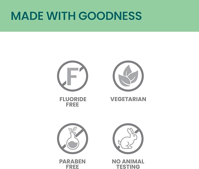 - FREE FROM COMMON CONCERNS: Includes ingredients for quality and stability, but remains free from other ingredients such as fluoride, harsh abrasives or chemical bleaches