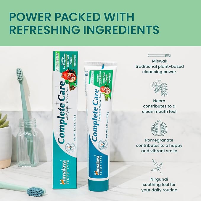 Himalaya Complete Care Toothpaste, Fluoride Free to Reduce Plaque and Brighten Teeth, 6.17 Oz