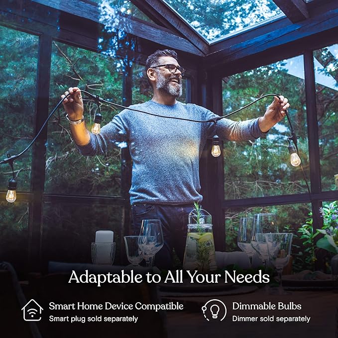- Classic Cafe Ambience: Brightech indoor outdoor string lights use vintage Edison Bulbs. Install this hanging lights string with old-fashioned filaments to give off a warm, old-time glow so that you can come home after a busy day and enjoy your very own retreat. Make your pergola, porch or other space to be an enticing, relaxing and soothing retreat with Brightech dimmable incandescent outdoor lights.