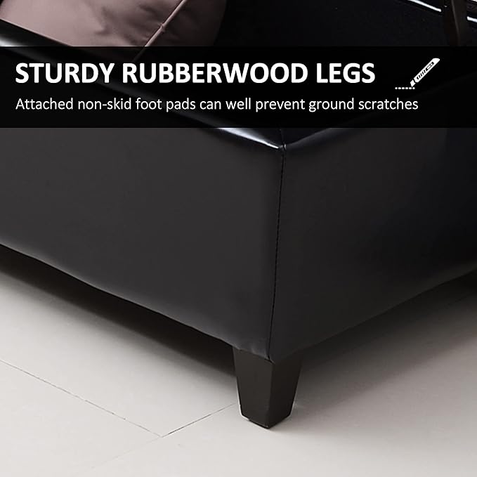 - Sturdy, Solid Base: The solid upper frame of this storage bench is further supported by four dark, covered hardwood feet that can support up to 265 lbs. ensuring worry-free seating and storage.