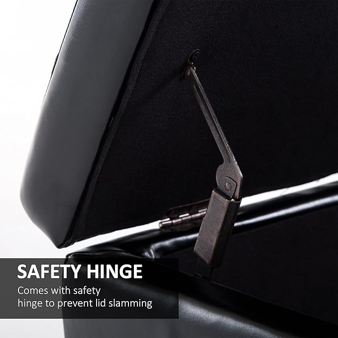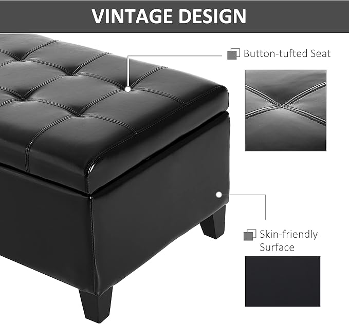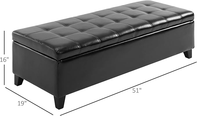 HOMCOM 51" Ottoman Storage Bench, Faux Leather Storage Chest with Lift Top, Tufted Ottoman for Living Room, Entryway, Black