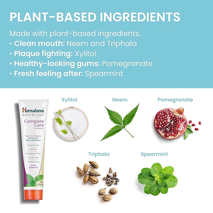 Himalaya Botanique Complete Care Toothpaste, Simply Spearmint, Plaque Reducer for Brighter Teeth and Fresh Breath, 5.29 oz, 4 Pack