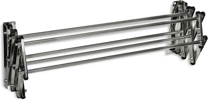 AERO W Racks Stainless Steel Wall Mounted Collapsible Laundry Clothes Drying Rack 45 Pound Capacity 11 Linear Ft