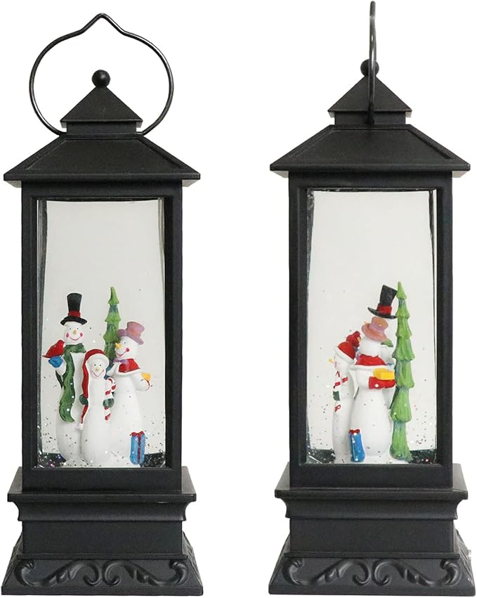 - ★WHAT YOU WILL GET: You will get 1 pcs Musical Water Snow Globe Lantern in black color finish, which can be operated by USB cord (included) or 3 AA batteries( not included). Product dimension is 4" x 4" x 12"