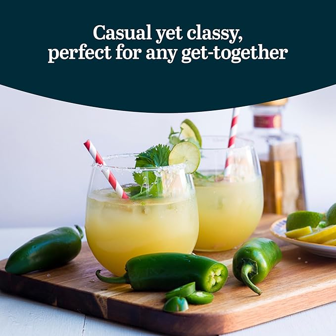 Libbey Stemless Red Wine Glasses, 16.75 Oz Classy, Wide Bowl Stemless Wine Glasses Set of 8, Chip Resistant Glasses Drinking Set for Get-Togethers