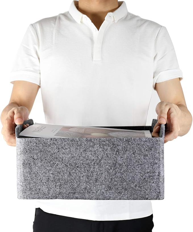 - 【Sustainable material】 Recycled felt with comfortable touch feeling, soft to prevent scratching,flexible for space saved up on desk, office ,bedroom, closet ,kitchen,bathroom or anywhere you desire with these stylish storage and organizer bins.