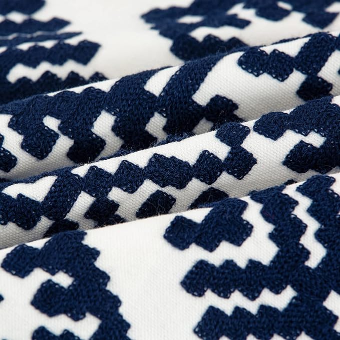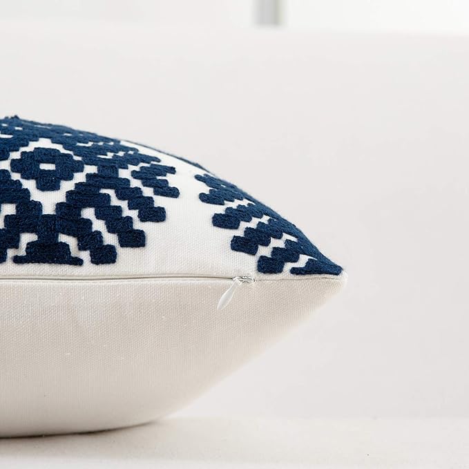 HWY 50 Navy Blue Decorative Throw Pillow Covers 18x18 Inch, Pack of 2 Embroidered Cotton Farmhouse Cushion Cover Pillow Case for Sofa Couch Living Room Bed Bedroon, Diamond Geometric Design