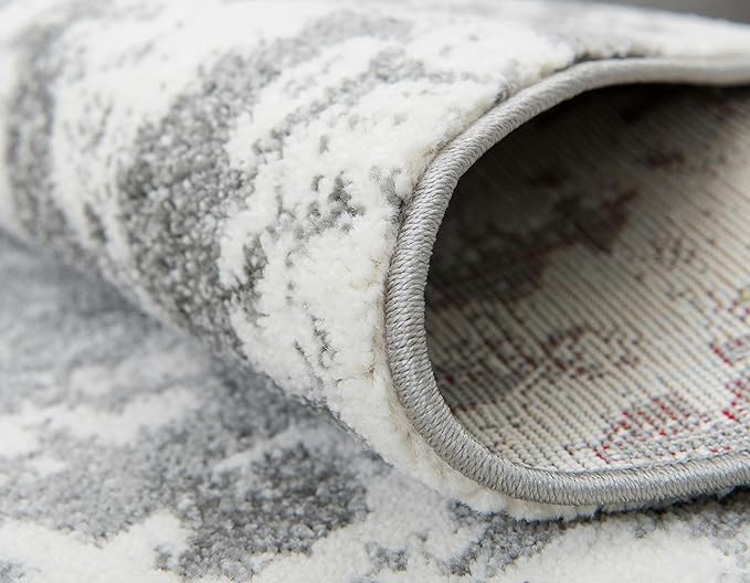 Unique Loom Rosso Collection Vintage, Geometric, Bohemian, Traditional, Distressed, Southwestern Area Rug, Rectangular 9' 0" x 12' 0", Light Gray/Ivory