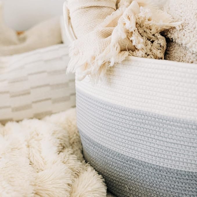 - Soft Yet Durable Cotton Rope: This premium woven laundry basket is crafted from cotton, no chemicals, no plastics. Safe for children and pets, with a soft texture that won’t scratch floors or hands.