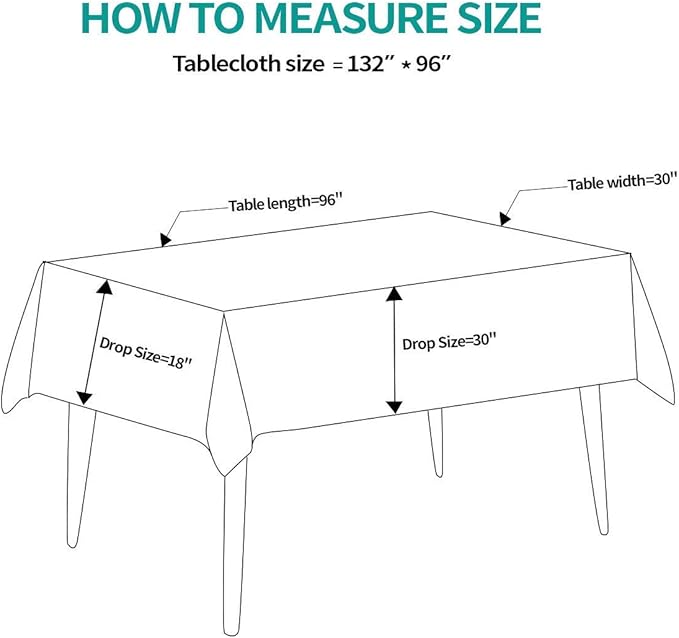 - Ideal size: The 90x132 rectangular tablecloth size is perfect for rectangular and oval tables, providing full coverage protection while also easily hanging down the edges to add a touch of elegance to your table