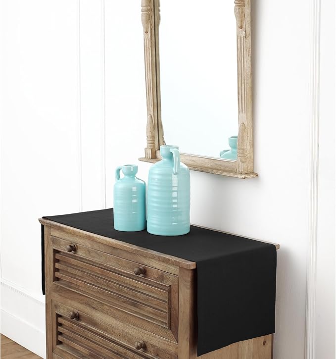 Solino Home Linen Black Table Runner 60 Inches - 100% Pure Linen Short Table Runner 14 x 60 Inch Ideal for Dresser and Coffee Tables - Fall, Autumn, Halloween, Thanksgiving - Fete
