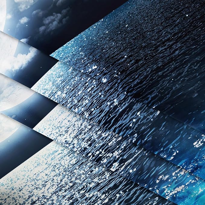 LB Moon Over Ocean Tapestry, Night Sky Tapestry Wall Hanging, 3D Fantasy Psychedelic Watercolor Wall Art for Bedroom Living Room Dorm Home Decor, 60 x 40 Inches