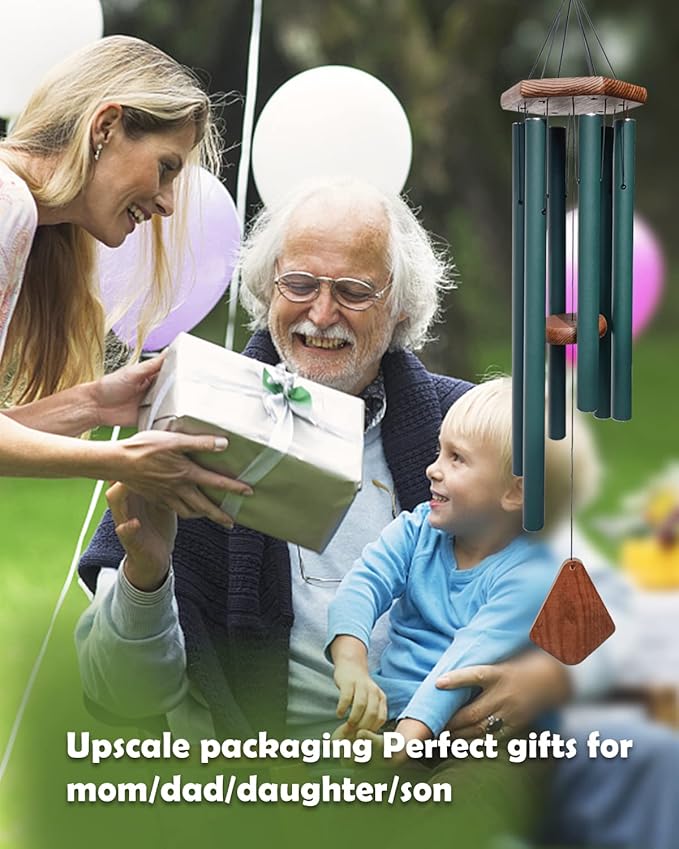 - Large Wind Chimes Outdoor Deep Tone- Green is a vibrant color for your decor. Total hanging overall length is 44β with a stronger metal hook. The longest tube is 23.6''. Big wind chimes produce lower, fuller ,deep tone.6 aluminum powder-coated tubes are hand-tuned by our professional tuning experts to achieve a superior musical performance. Heavy duty nylon cording high density beech wood striker made from FSC-Certified wood.