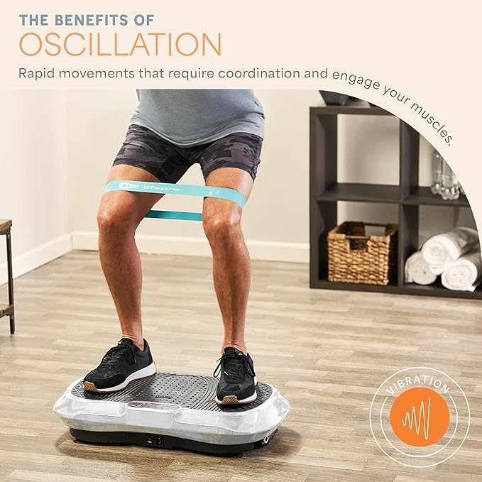 - Home Workout Equipment for Oscillation Movement - Through oscillation movement, the Lifepro Waver Vibration Plate Exercise Machine improves muscles, energy balance, circulation, and reduces joint tension. Get started with everything you need, including 2 loop bands, 4 resistance bands, remote control, and user guide. Easily stows away under your bed or furniture.