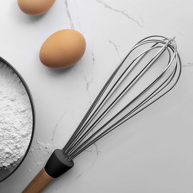 - Set includes 1 serving and mixing spoon, 1 perforated spoon and skimmer, 1 turner, 1 angled spatula, 1 egg and oil brush and 1 whisk; a completely functional set that will cover all your basic baking and kitchen needs from the first step of mixing the ingredients until you are ready to serve and taste your delicious baked goods.