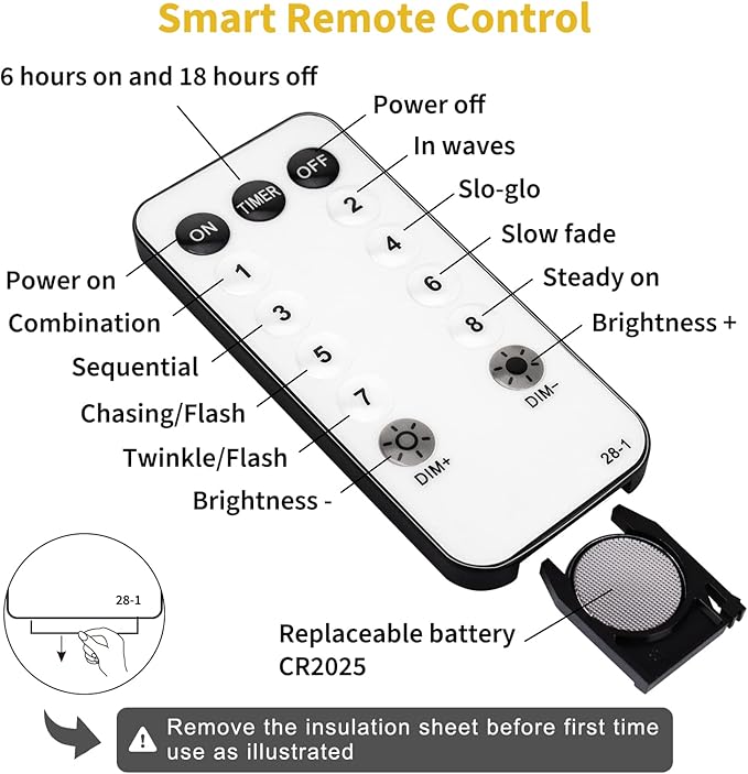 - Special Feature : Dimmable, Timer, Twinkling, Waterproof