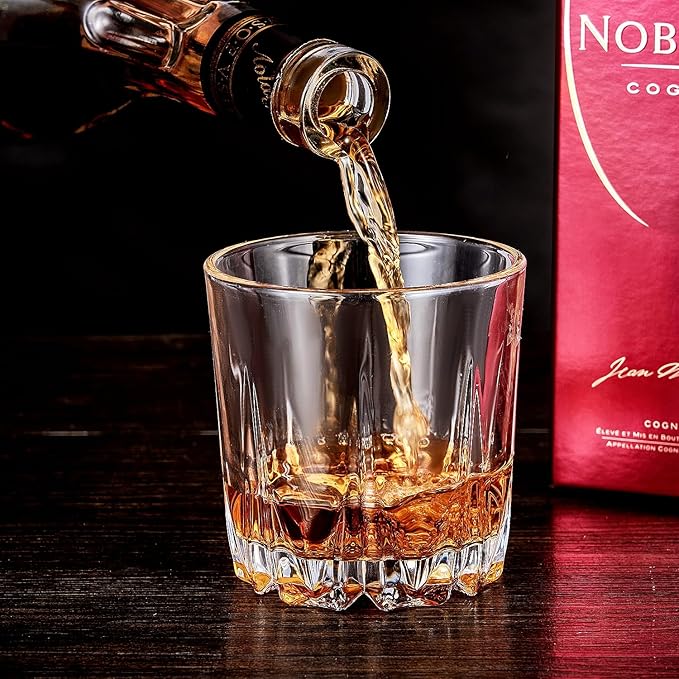 - 【Classic Whiskey Glasses】All of our crystal whiskey glasses feature an uneven surface and high-quality craftsmanship inspired by rocket launches. Transparent, sparkling and elegant appearance gives it the highest clarity and brightness. The classic whiskey glasses have an antique look and are sized to look elegant, chic and cool for both formal and informal occasions.