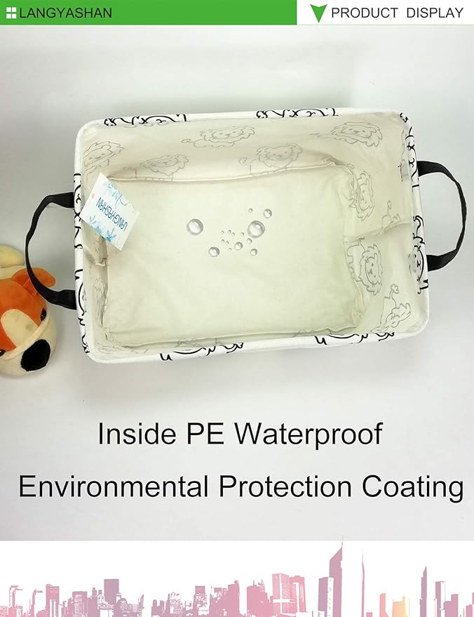 - Material: Polyester canvas linen and PE environmental protection waterproof coating. This storage basket easy to stand and foldable, Waterproof PE coating inner, which to achieve the effect of moisture resistant.