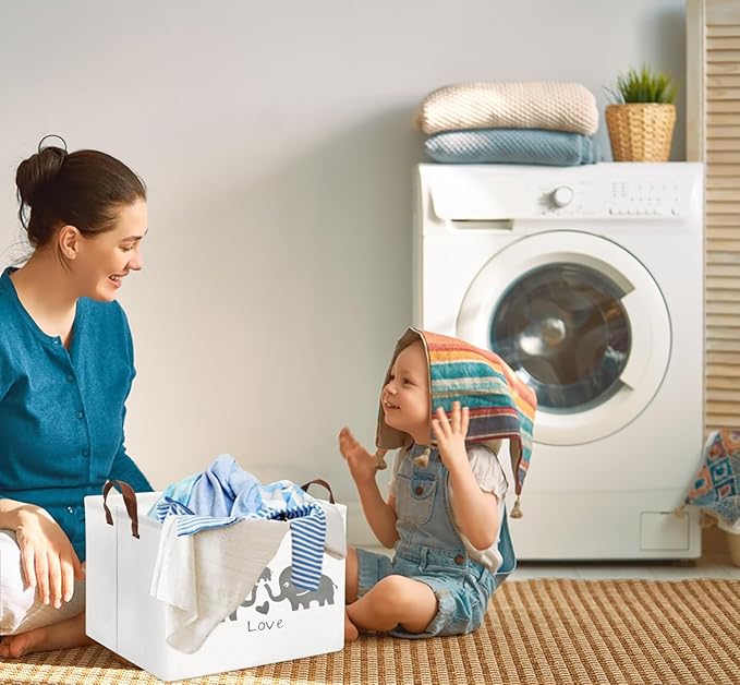 HIYAGON Baby Basket - Cute Elephant Toy Storage Bin Organizer Box Gift Basket for Boys and Girls (Love Elephants)