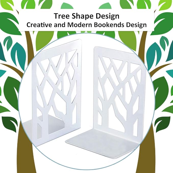 Book Ends, Bookends, Bookends for Shelves, Bookend, Book Ends for Heavy Books, White Metal Book Shelf Holder Home Decorative, Book Stoppers for Shelves, Bookend Supports 2 Pair