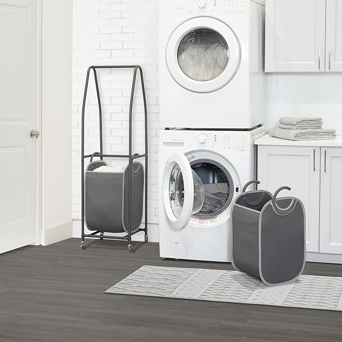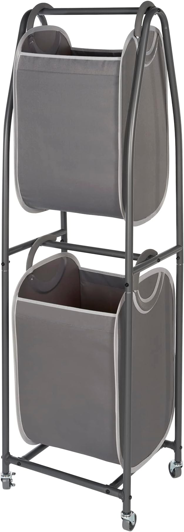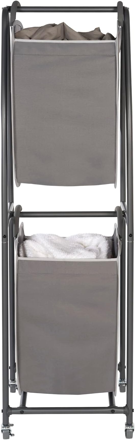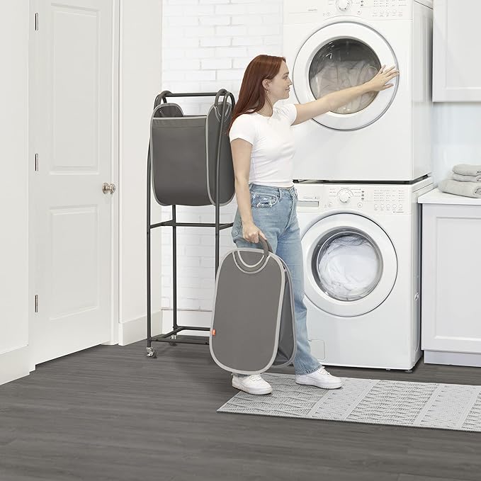 - 2 X LIGHTWEIGHT LAUNDRY TOTES - The cart vertically stacks two removable self-standing dirty clothes hamper bags with c-shaped comfort-grip foam handles. The tote bags can be collapsed to store flat when not in use.
