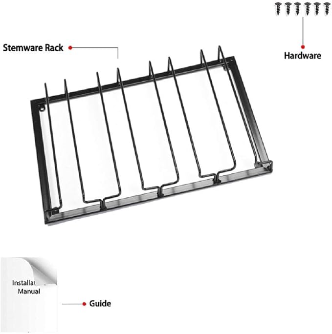 - š·EASY TO INSTALL: Comes with the mounting hardware, no advance drilling advance required, just a few minutes to complete the installation. Organize your stemware collection, keep your wine glasses under the cabinet.