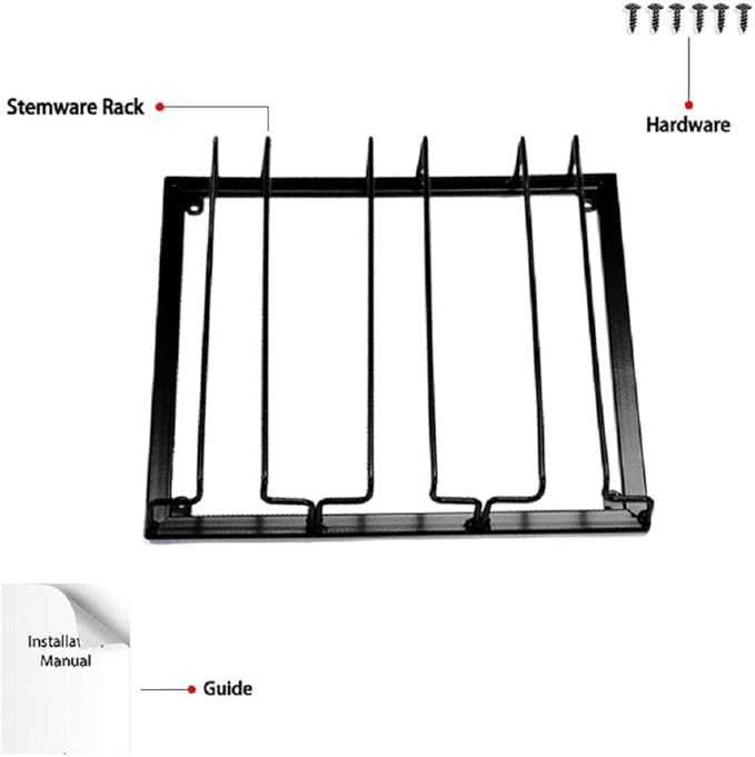 - š·EASY TO INSTALL: Comes with the mounting hardware, no advance drilling advance required, just a few minutes to complete the installation. Organize your stemware collection, keep your wine glasses under the cabinet.