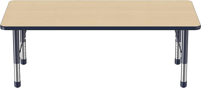 FDP Rectangle Activity School and Classroom Kids Table (30 x 60 inch), Toddler Legs, Adjustable Height 15-24 inches - Maple Top and Navy Edge