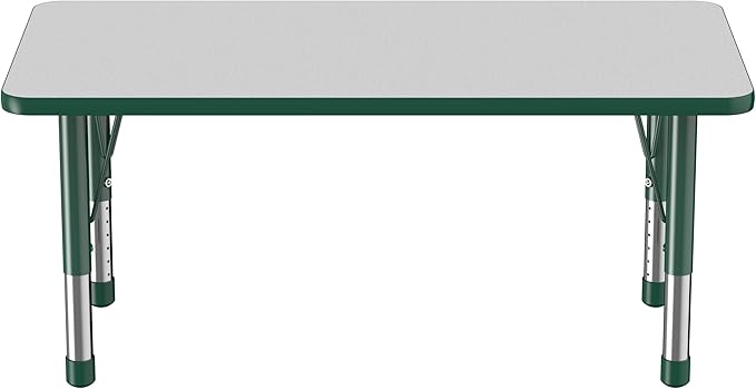 FDP Rectangle Activity School and Kids Classroom Table (24 x 48 inch), Toddler Legs, Adjustable Height 15-24 inches - Gray Top and Green Edge