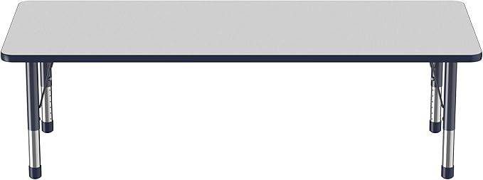 FDP Rectangle Activity School and Classroom Kids Table (30 x 72 inch), Chunky Toddler Leg, Adjustable Height 15-24 inches - Gray Top and Navy Edge