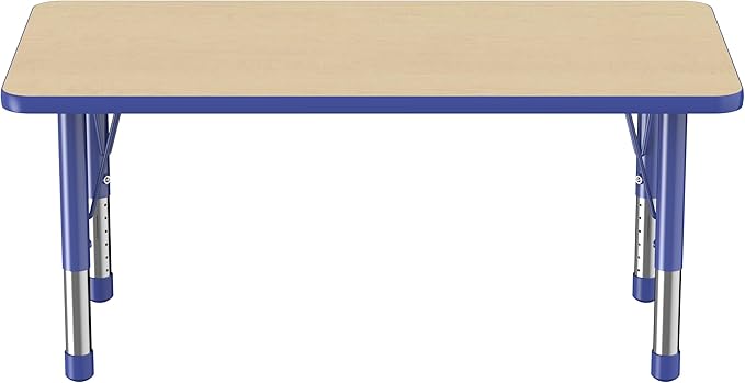 FDP Rectangle Activity School and Kids Classroom Table (24 x 48 inch), Toddler Legs, Adjustable Height 15-24 inches - Maple Top and Blue Edge