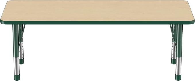 Factory Direct Partners FDP Rectangle Activity School and Classroom Kids Table (24 x 60 inch), Chunky Toddler Legs, Adjustable Height 15-24 inches - Maple Top and Green Edge