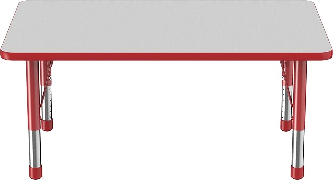 FDP Rectangle Activity School and Classroom Kids Table (30 x 48 inch), Chunky Toddler Legs, Adjustable Height 15-24 inches - Gray Top and Red Edge