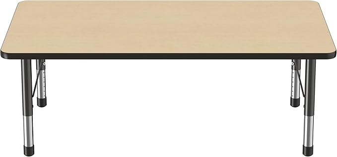 Factory Direct Partners FDP Rectangle Activity School and Classroom Kids Table (36 x 60 inch), Toddler Leg, Adjustable Height 15-24 inches - Maple Top and Black Edge