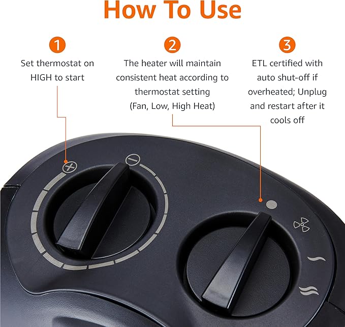 - CUSTOMIZABLE HEATING OPTIONS: Choose from three settings to suit your needs - High (1500W), Low (900W), or Fan Only for air circulation without heat.
