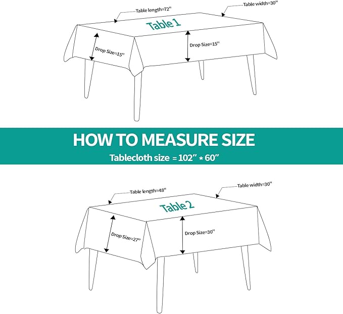 - Ideal size: The 60x102 rectangular tablecloth size is perfect for 6 foot rectangle tables, providing full coverage protection while also easily hanging down the edges to add a touch of elegance to your table