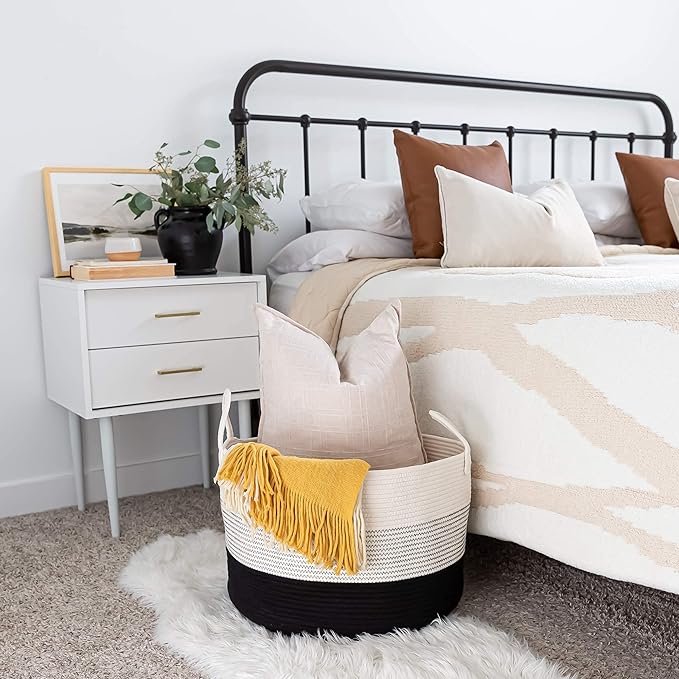 - Beautiful Addition to Your Boho Decor: Elevate your living room decor with this handwoven blanket basket. Neutral tones and minimalist design create a cozy, stylish vibe, perfect for farmhouse, Scandinavian, or boho decor aesthetics.
