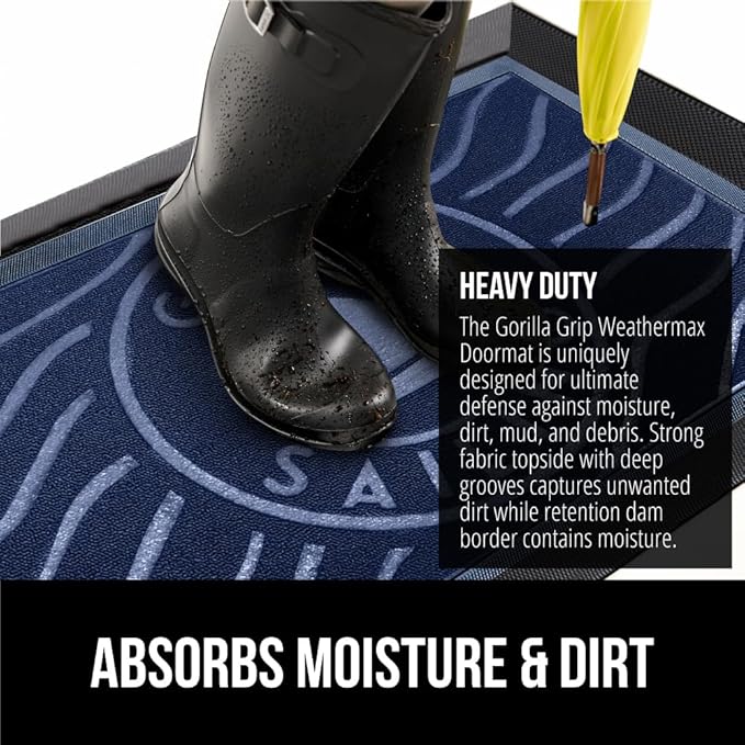 - Heavy Duty All Weather Doormat: The Gorilla Grip WeatherMax doormat is durably designed to withstand all weather conditions, from snow and rain to mud and sand; the all season mat features deep grooves that help capture moisture, dirt and debris
