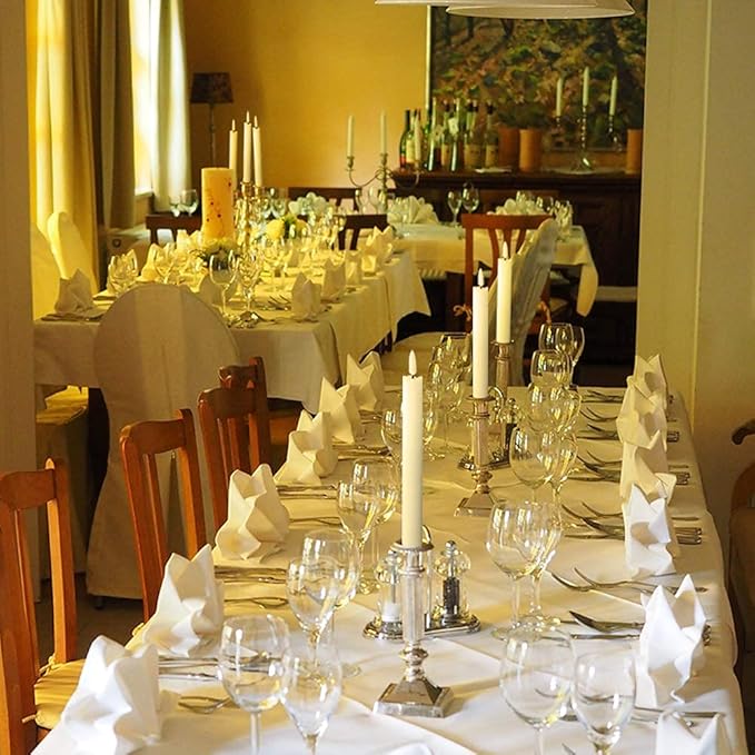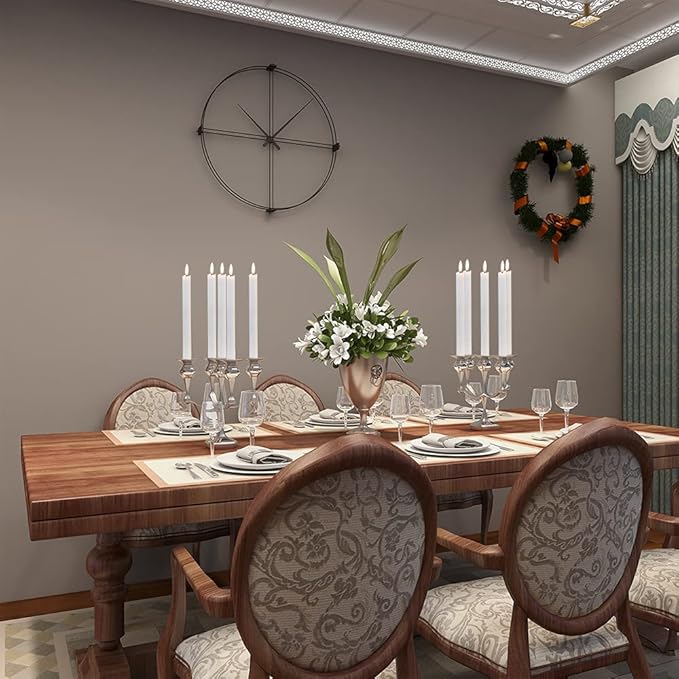 - EXCELLENT DESIGN: You don't need to use a candlestick to stand (you can also use it with a candlestick), These taper candles made form real wax and 3D Wick realistic flicker design, feels and looks like a real wax taper candle flame. Warm light glow creates a romantic atmosphere when use as dinner, party, wedding, birthday, Christmas home decoration