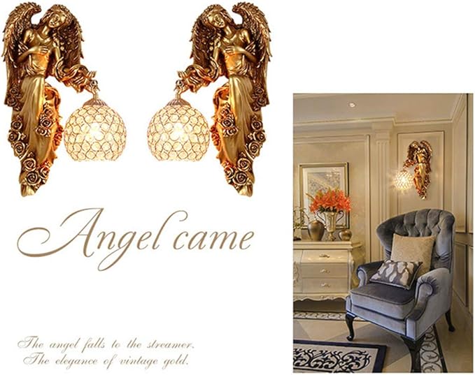LITFAD Angel Wall Lamp Antique Spherical Sconce Light Decorated Bedside Lamp Clear Crystal 1 Light in Gold LED Wall Light for Bedroom Living Room Hotel - Right