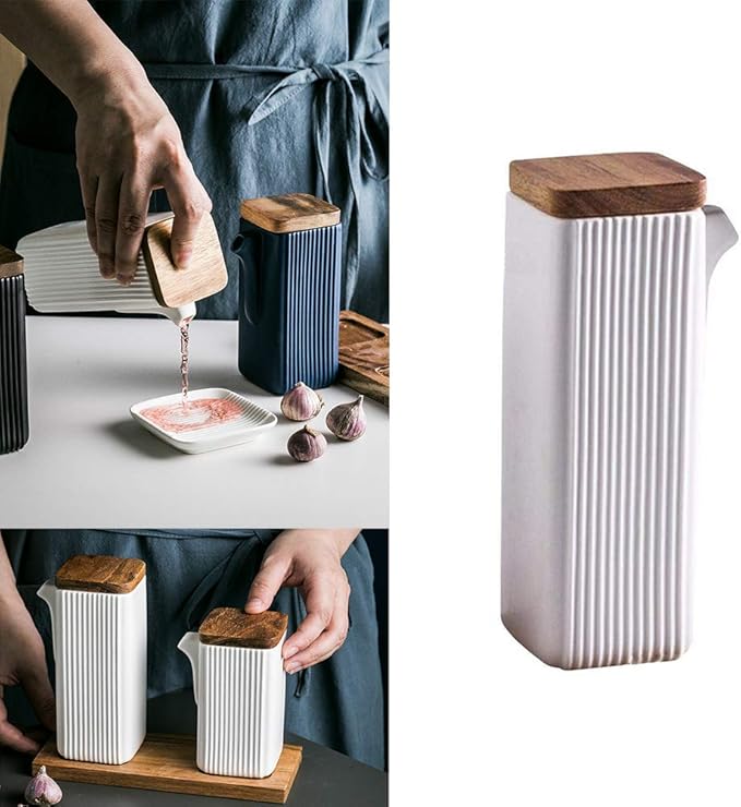 Ceramic Tabletop Liquid Condiment Dispenser, Modern Design for Oil or Vinegar, White