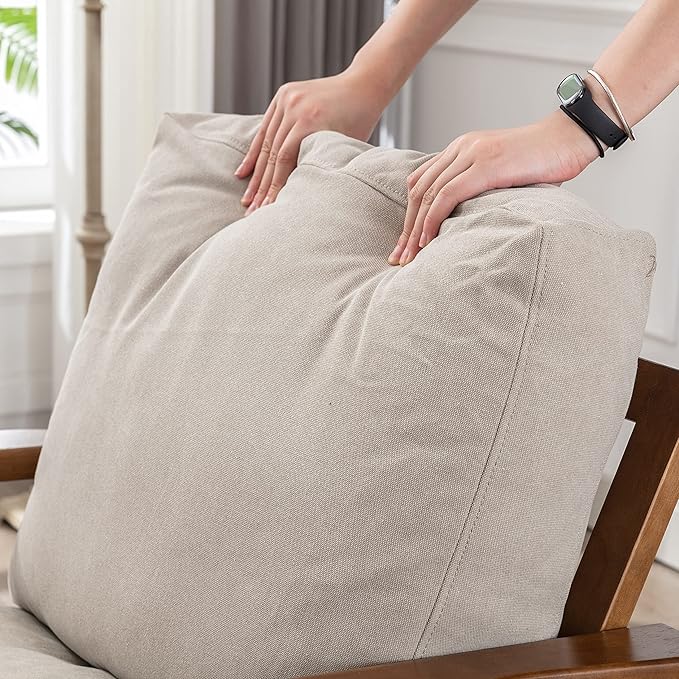 - Mid-century lounge chair, two super soft cushions are upholstered in denim fabric which is more breathable and durable than ordinary fabrics. Both backrest and seat cushions are REMOVABLE