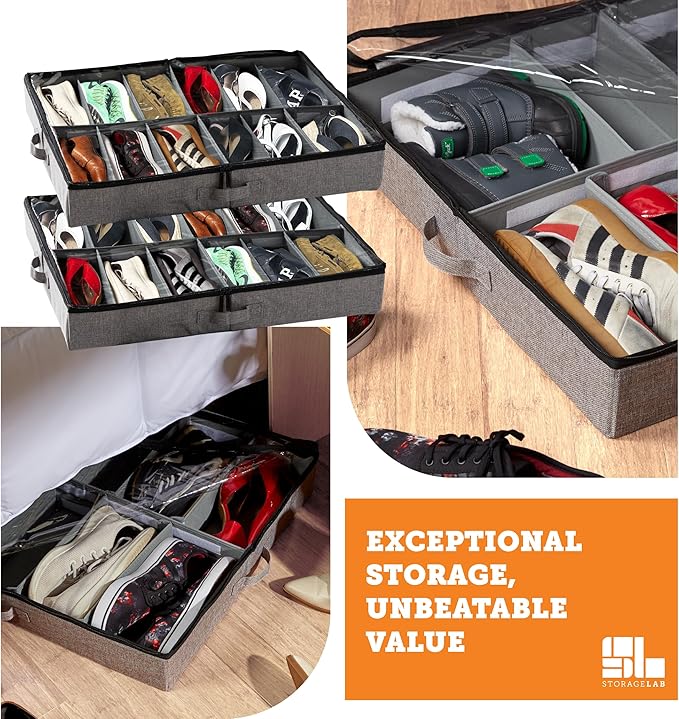 - CLEAR THE CLUTTER: Put away your clutter with StorageLAB’s under bed storage containers. Keep your out-of-season clothes, shoes, books, or toys out of sight while freeing your home storage space.