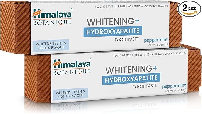 Himalaya Botanique Whitening + Hydroxyapatite Toothpaste, Peppermint - Nano Hydroxyapatite to Support Remineralization and Restore Enamel, Appropriate for Sensitive Teeth - Gluten Free, 4 oz, 2 Pack