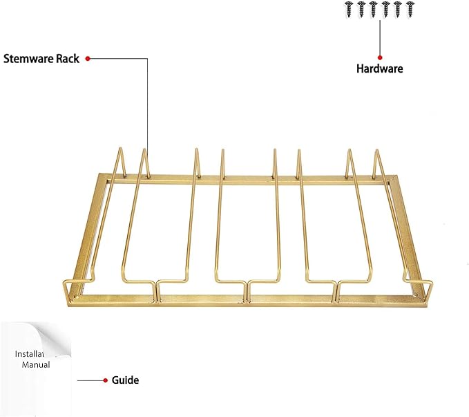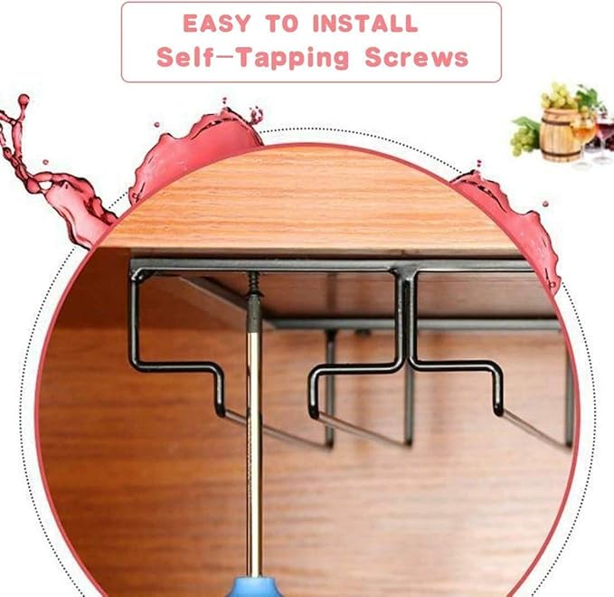 - š·EASY TO INSTALL: Comes with the mounting hardware, no advance drilling advance required, just a few minutes to complete the installation. Organize your stemware collection, keep your wine glasses under the cabinet.